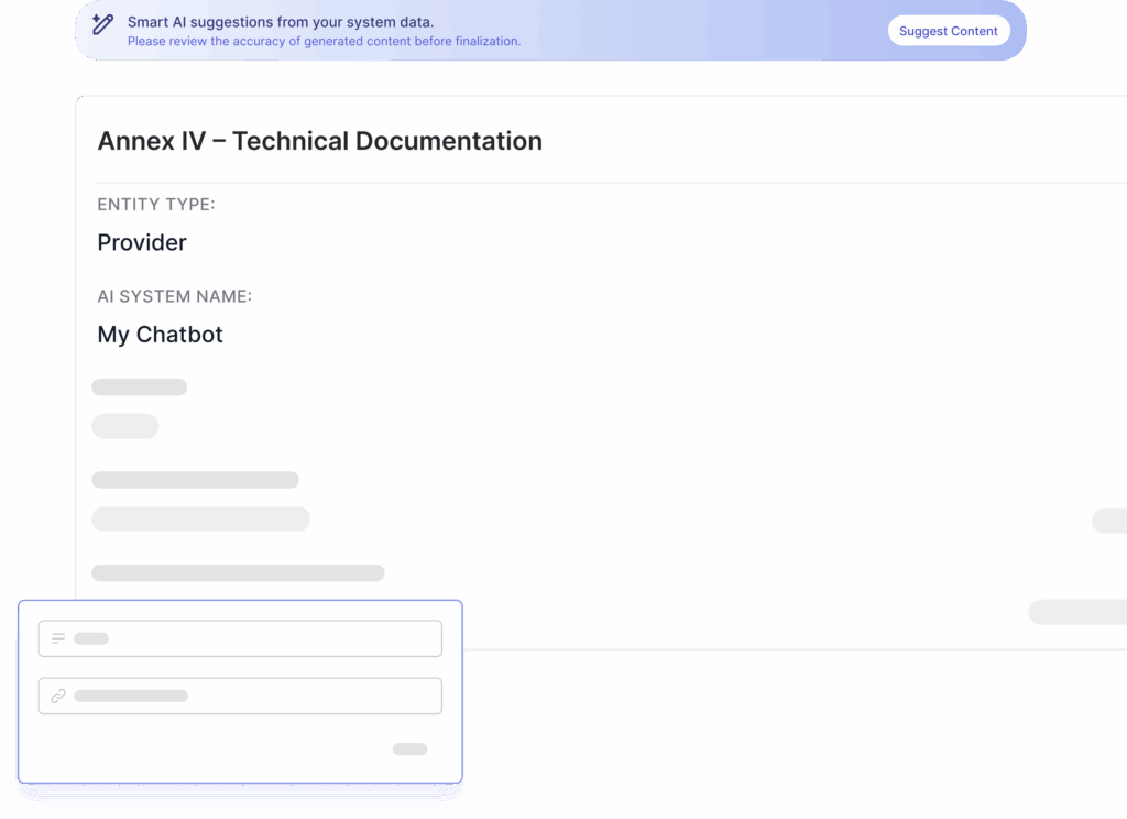 Annex IV Technical Documentation Automation - Automated creation and maintenance of Annex IV technical files with integrated evidence sources.