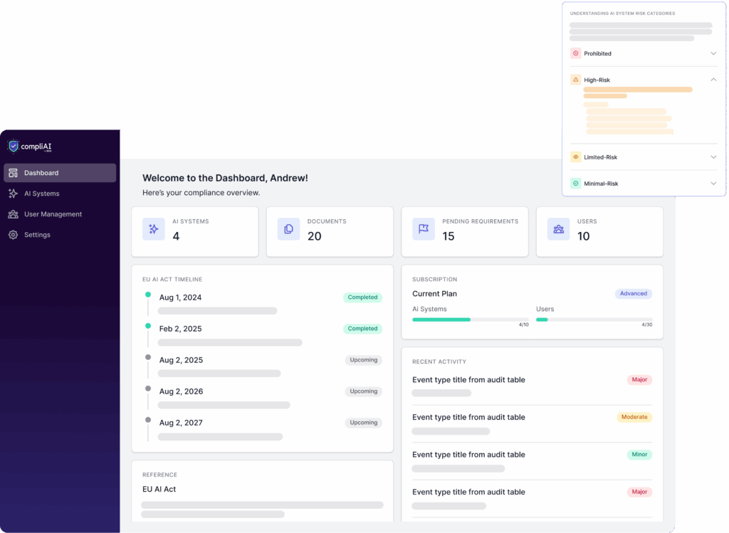 CompliAI is an AI compliance software designed to help organizations stay ahead of the EU AI Act and global AI regulations.